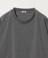透過成品的顏料水洗加工,營造出有深度的褪色效果,而乾淨俐落的基底布料則維持了高級印象。寬鬆舒適的版型搭配短版的俐落長度,領口、肩線、袖孔皆以窄幅雙線車縫,為褪色色彩增添立體感,也成為單穿時的設計亮點。