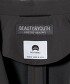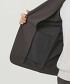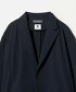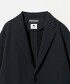 省略了胸口口袋和袖口鈕扣等通常外套的細節,腰部口袋也與接縫線融為一體,達到極簡的完成狀態。