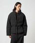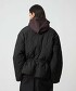 橫紗使用黑色線,深棕色呈現出陰影豐富的色彩。寬鬆的版型和適度的填充量,通過收緊下擺和袖口,可以調整成氣球輪廓。