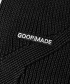 正面以酵素石磨水洗工藝呈現色澤 配合 GOOPiMADE 電繡 Logo 點綴反面維持原有紗線實際顏色