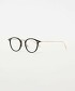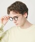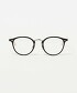 以修飾臉型的波士頓框型為基礎,鏡框與鏡腳在材質與粗細上營造出對比的設計。