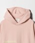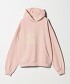 胸寬與袖子如同男款連帽上衣般寬鬆,衣長則調整為女性易於穿搭的長度。