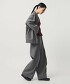 可以與同材質的外套搭配成套,或將OVERSIZE上衣紮進褲子裡也很不錯。