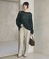 單獨穿著也能展現百搭力的長褲,建議透過上衣的材質,例如透膚或圈圈紗等,來增添亮點。