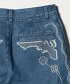 採用13oz丹寧布料,於刺繡後再經特殊加工,使其呈現自然且富有層次感的成品狀態。
