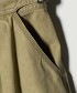 採用高捻度棉斜紋布料,經過染料與顏料染色並進行成衣加工,打造出仿舊復古的氛圍。