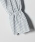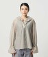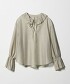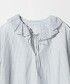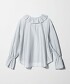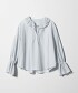 這是一款以立體荷葉邊和條紋圖案為亮點的襯衫。