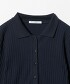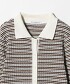 這款帶領的開襟衫以變形羅紋的凹凸感為特徵。