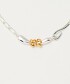 結合兩種不同鍊條的短版款式,於正面飾以零件。