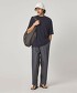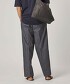 褲襠設定為寬鬆深裁,褲管則為寬版漸收的錐形輪廓。