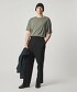 雖然版型寬鬆,但透過抑制腰部周圍的膨脹感,使其不至於過度寬大,呈現出能俐落穿著的褲型。