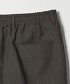 正面剪裁俐落,僅後腰部採用鬆緊帶設計,是兼具休閒感與高級質感的單品。