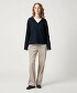 這款上衣易於搭配各種下身,前面的開口設計使得與高領或剪裁上衣層疊時,印象會有所改變,是一件高實用性的單品。