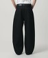 兩側設計為外彎弧線,褲襠處抓褶則勾勒出內彎弧線,形成獨具風格的原創曲線輪廓。
