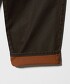 棕色面料經過特殊塗層處理,設計獨特,宛如牛仔褲外罩的CHAPS(套褲)。
