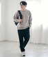 身體部分使用了粗纖維的聚酯毛線,通過拼接天竺編織完成,為面料增添了穩定感。