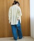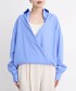 將門襟鈕扣交叉扣上,即可輕鬆打造出自然隨性的前襟交叉風格。