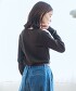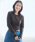 使用適度彈性的羅紋材質,波浪設計圓領長袖T恤。