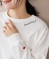 亮眼的單點設計。隨意搭配的心形圖案混合長袖T恤