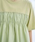 將梭織布拼接於T恤上,呈現立體感的抓皺設計。
