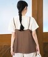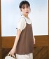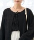 附有前綁帶的開襟衫與長版細肩帶背心的疊穿設計。