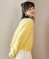 將鈕扣放在前面可作為輕盈的開襟衫,放在後面則可作為簡潔的圓領針織衫穿著。