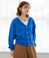 鈕釦朝前可作開襟衫,鈕釦朝後則為圓領上衣穿著。