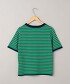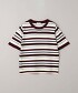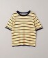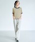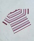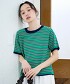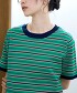 吸睛的多色條紋,加上領口的撞色滾邊設計,為整體增添亮點。