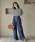 • 綁帶牛仔寬褲