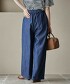 適合春夏著用的薄料牛仔寬褲,褲頭為全鬆緊腰設計,穿起來既舒適又自在。