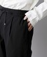 單褶設計搭配附金屬飾扣的腰帶,提升整體質感,營造不過於休閒的印象。