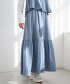 清爽可愛。亞麻人造絲層次裙
