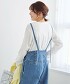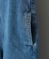 輕鬆一穿即刻時尚。以拉鍊為設計重點的丹寧吊帶褲。