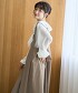 搭配垂墜感荷葉邊襯衫,能襯托出深V領,打造優雅的春季服飾風格。