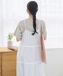 米白格紋緹花蛋糕吊帶洋裝
