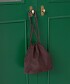 迷你化的束口袋型與仿皮質感完美搭配的肩背包。