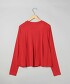 〇短版×傘襬剪裁,下襬的荷葉邊設計能拉高腰線,即使不紮進下身也能營造完美比例。肩部與袖子的衣身部分採用合身卻不過於緊繃的版型。