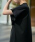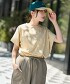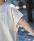〇這款短袖剪裁上衣,以方領輪廓為其特色。