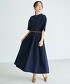 〇採用結合人造絲垂墜感與聚酯纖維挺括感的霧面平織材質。可單穿,亦能搭配背心或牛仔褲玩轉疊穿風格,是款百搭洋裝。