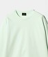 領口使用同材質窄版設計,袖口為無羅紋的翻摺款式,呈現極簡外觀。
