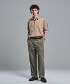 帶有單褶設計,褲襠寬鬆的錐形褲版型。