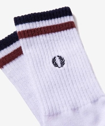 飾有標誌性的羅紋邊。羅紋邊是 Fred Perry 的經典設計。配色與 Fred Perry 襯衫的顏色相呼應。這款短襪也是饋贈佳品。部分紗線採用再生材料製成。