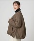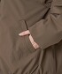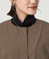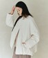 下擺加入抽皺營造份量感,同時以無領設計俐落收尾。