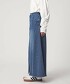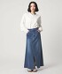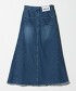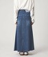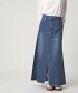 這款直筒版型的丹寧裙,側邊拼接設計兼顧了活動性與輕盈的裙襬擺動感。