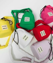 採用啞光質感的沙沙材料製成的蓬鬆包,搭配CITEN標誌的迷你肩包。