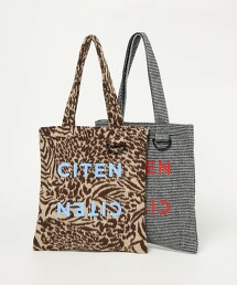 結合秋冬感的絨毛感的千鳥格紋和豹紋布料×CITEN彩色LOGO的縱型托特包。