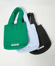 這款托特包採用了清爽的條紋泡泡紋路面料,其蓬鬆的泡棉質感非常適合日常休閒穿搭。