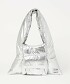 這款托特包的特色在於其蓬鬆且具鋪棉感的三角形輪廓,風格獨具。