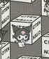 以CITEN店鋪中常見的CITEN品牌LOGO立方體盒子為背景,搭配三麗鷗明星角色們或坐或靠、玩耍其中的原創印花圖案。
