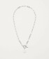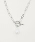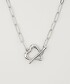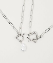 以別緻心型與仿珍珠造型點綴的T字釦環項鍊。